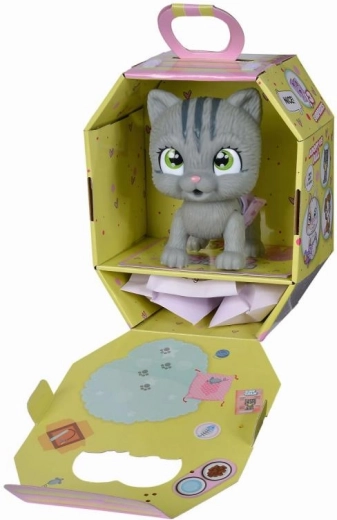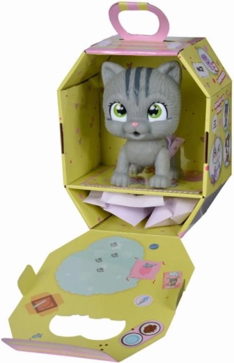 De set bevat: een kitten van 15 cm met luier, plasfunctie, 3 verrassingen en een adoptiecertificaat. Alles is verpakt in een stijlvol kartonnen doosje dat kan dienen als een draagbaar huisje. Cadeau-accessoires zijn verpakt in speciale zakjes.