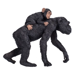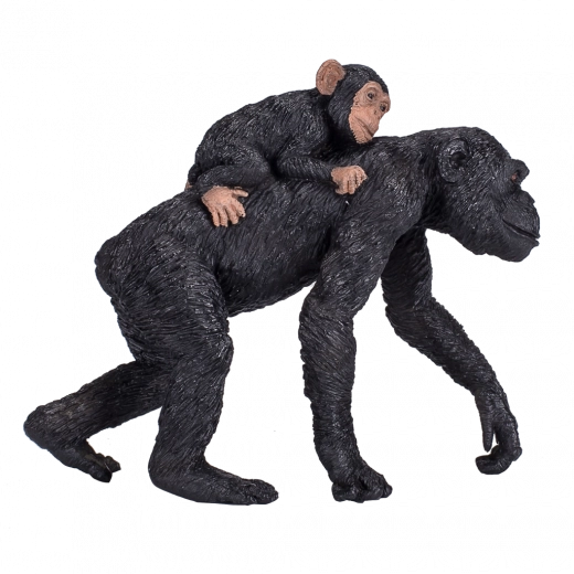 Ontdek de wereld van primaten met dit gedetailleerde figuur van een chimpansee die haar jong op de rug draagt. De precieze vachttextuur, realistische kleuring en stabiele houding maken het een aantrekkelijke toevoeging aan de kinderkamer en aan elke collectie.
