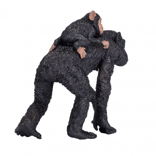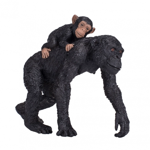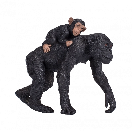 Getextureerde vacht, nauwkeurige verhoudingen en subtiele gezichtsdetails zorgen voor een authentieke uitstraling van de chimpansee met jong.