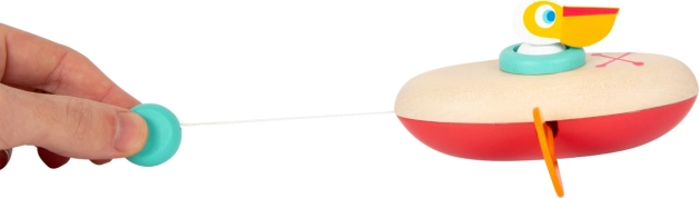 Een vrolijke pelikaan in een kano van het merk SMALL FOOT beweegt dankzij het opwindmechanisme vanzelf over het wateroppervlak. De combinatie van hout en hoogwaardige kunststof zorgt voor duurzaamheid en een lange levensduur. Ideaal voor in bad en bij het zwembad, en het bevordert de fijne motoriek en het begrip van oorzaak en gevolg.