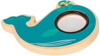 De turkooiskleurige walvis van hout en kunststof ligt perfect in een kleine kinderhand. Helpt de greep, hand-oogcoördinatie en de eerste omgang met voorwerpen spelenderwijs te trainen.