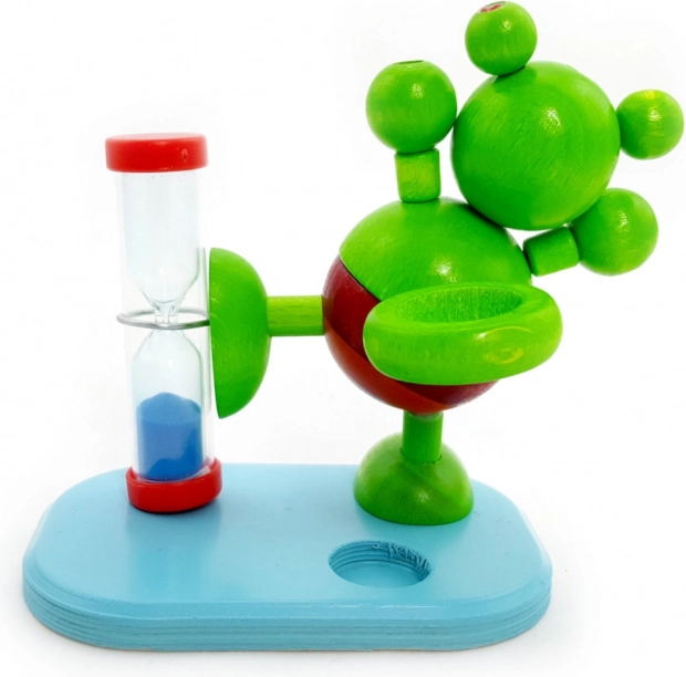 Deze schattige zandloper in de vorm van een kikker maakt van tandenpoetsen een leuk ritueel. Het interval van twee minuten helpt kinderen de aanbevolen poetstijd aan te houden, terwijl de praktische houder de tandenborstel netjes en binnen handbereik houdt.