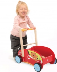 Wil je dat je kleintje zijn mobiliteit ontwikkelt en spelenderwijs leert lopen? De houten loopwagen in de vorm van een auto is de ideale helper. Hij is uitgerust met rubberen wielen voor een stille beweging en een systeem voor snelheidsregeling dat je kind beschermt tegen vallen. Kinderen vinden er ook een opbergruimte voor hun favoriete speelgoed.