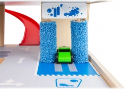 De wasstraat met draaiende borstels zorgt voor realisme, terwijl de rubberen afzetting op de verdiepingen voorkomt dat autootjes naar beneden vallen en de veiligheid tijdens het rijden verhoogt.