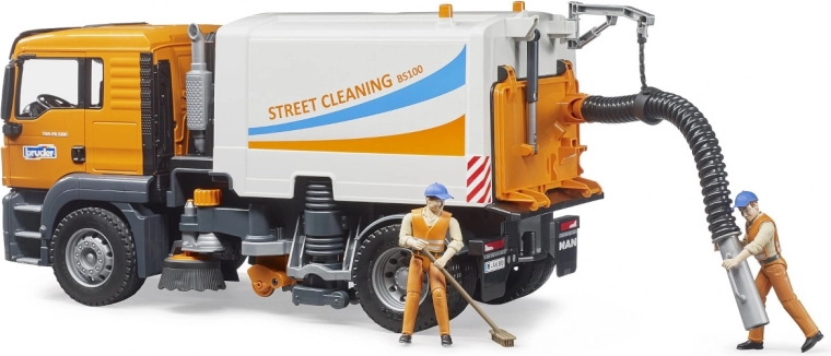 De realistische BRUDER MAN TGS veegwagen op schaal 1:16 biedt kinderen een authentieke ervaring van het schoonmaken van stadsstraten. Dankzij de functionele borstels, de flexibele zuigslang en de kiepbare container leren ze moeiteloos hoe echte reinigingsvoertuigen werken. De robuuste constructie van hoogwaardige kunststoffen garandeert een lange levensduur en veilig speelplezier.