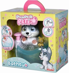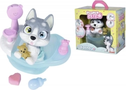 Husky Hondje Pamper Petz in bad - de perfecte metgezel voor een plezierige badtijd! Schattige puppy met de functie om te drinken en te plassen, die kinderen betovert met zijn interactiviteit en speelse functionaliteit.