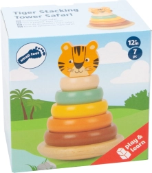 Deze indrukwekkende stapelbaan met tijgerprint is niet alleen een mooi speelgoed, maar ook een geweldig hulpmiddel voor de ontwikkeling van kinder vaardigheden. Het bestaat uit 7 delen, inclusief een basis en zes gekleurde ringen die op een staaf met een tijgerkop geplaatst kunnen worden. Op deze manier oefenen kinderen met hand-oogcoördinatie en vormherkenning.