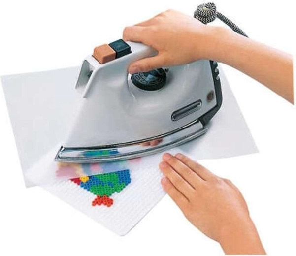Na afdekken met papier wordt de creatie kort gestreken en blijft deze stevig. Strijken gebeurt altijd door een volwassene.