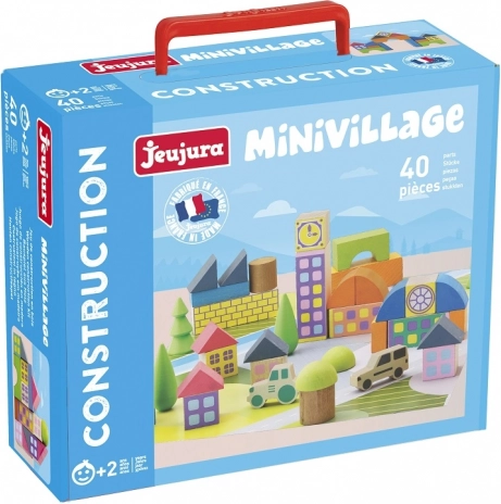 Ontdek de charme van de klassieke houten bouwset van JEUJURA, die de verbeelding en fijne motoriek van kinderen stimuleert. De set bevat 40 zorgvuldig afgewerkte onderdelen en een speelmat, waarmee kinderen eenvoudig een schilderachtig dorpje bouwen. Gemaakt in Frankrijk van massief beuken- en grenenhout, behandeld met veilige watergedragen verven. De praktische verpakking in een kartonnen koffertje, bedrukt met plantaardige inkten, maakt van deze set een geweldig cadeau. Veilige materialen, hoogwaardige afwerking en creatief spel voor kinderen vanaf 2 jaar.
