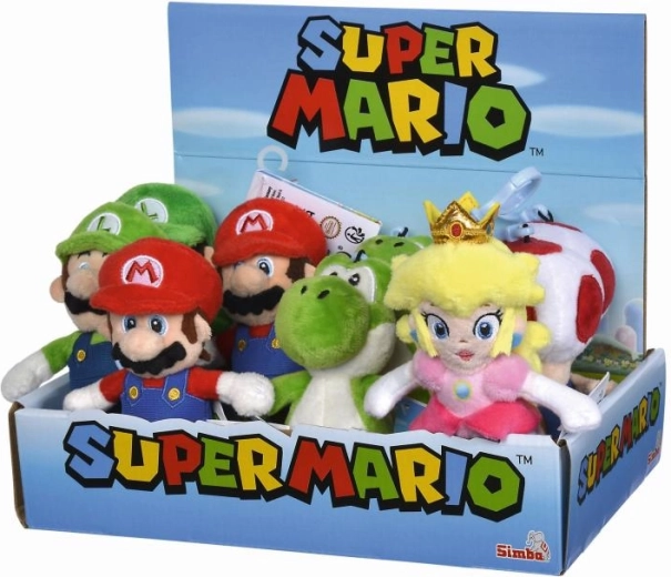 Sleutelhanger met figuur onder Super Mario-licentie. Afmeting 12,5 cm. 5 soorten (4x Mario, 3x Luigi, 2x Yoshi, 2x Toad en 1x Peach). Display 12 stuks.