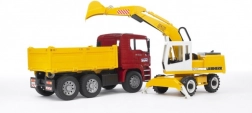 Deze fantastische bouwset van Bruder omvat een MAN TGA-vrachtwagen met zachte banden en een praktische kiepbak. Daarbij hoort een functionele Liebherr-graafmachine met stabilisatiesteunen, geprofileerde banden en een graafarm met een cabine die 360° draait. Het product is in Duitsland kwalitatief afgewerkt met duurzame materialen.