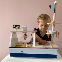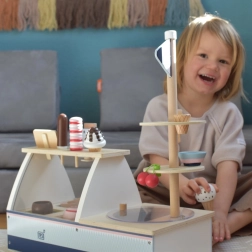 De ijskraam van Small Foot biedt kinderen spannende speelmogelijkheden die creativiteit en fantasiespel stimuleren. Deze kraam is uitgerust met magnetische ijsbolletjes die je naar eigen smaak kunt stapelen en combineren.