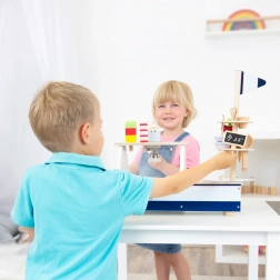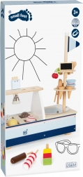 De set bevat ook een kom met lepels, wafels en diverse accessoires. Alles is vormgegeven in een subtiel en genderneutraal ontwerp, waardoor het perfect is voor ieder kind. Afmetingen van de kraam: 45x21x47 cm, werkbladhoogte: 11 cm.