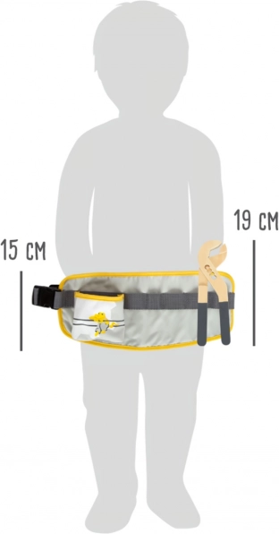 De kinder gereedschapsriem Miniwob is perfect aanpasbaar en zorgt voor veilige bevestiging dankzij de klikgesp. Deze speelse riem bevat: