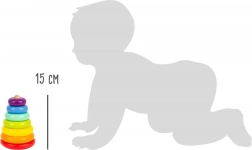 Deze stapeltoren laat kinderen gekleurde ringen herkennen en sorteren op grootte en kleur. Dankzij de afgeronde basis kan de toren schommelen, wat extra vreugde en plezier aan het spel toevoegt. De robuuste houten constructie is ideaal voor langdurig plezier, ook voor de allerkleinsten.