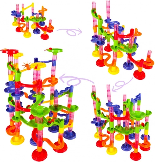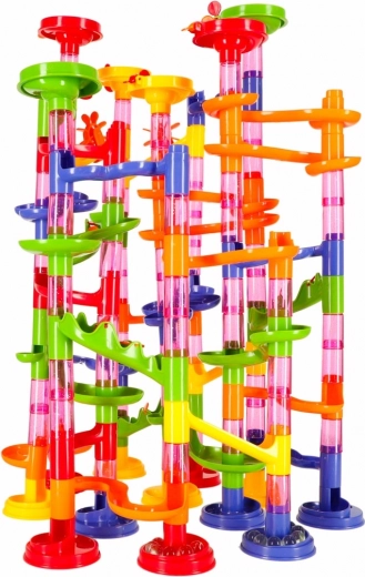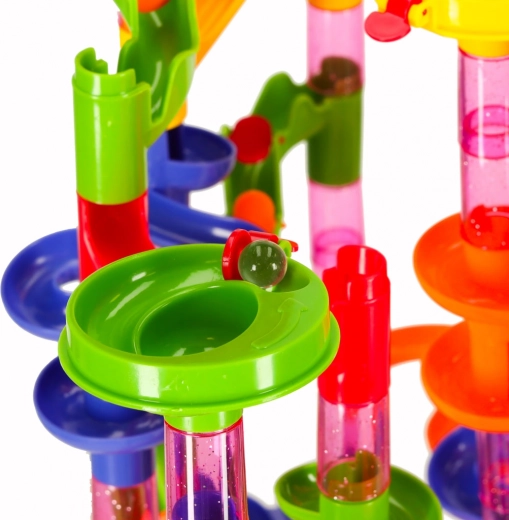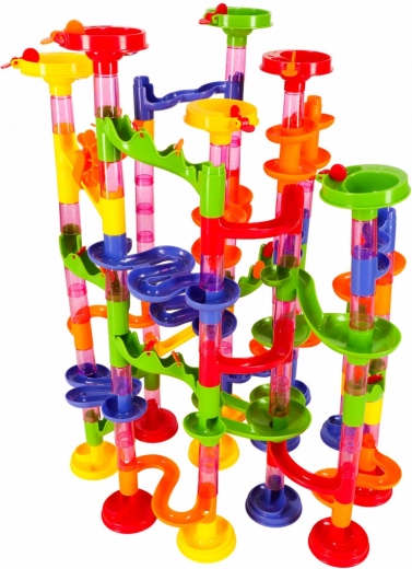 Met deze knikkerbaan ontwerp en bouw je je eigen labyrinten van kleurrijke kunststof onderdelen. Maak unieke constructies, organiseer races en kijk hoe de knikkers door spiralen, tunnels en bochten suizen. Dankzij het intuïtieve koppelsysteem leren kinderen logisch redeneren en probleemoplossend denken.