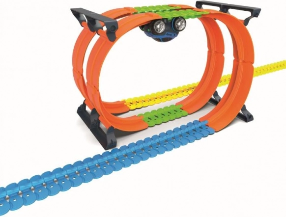 Combineer twee loopings tot één gigantische lus en geef de autootjes een razendsnelle doorgang met spectaculair g-kracht-effect.