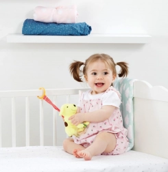 Eenvoudige bevestiging aan bedje of autostoel zorgt ervoor dat het speeltje altijd binnen handbereik is, wat bijdraagt aan vermaak onderweg en thuis.