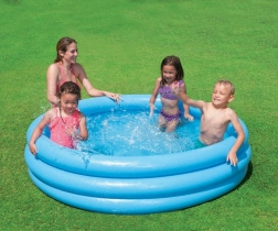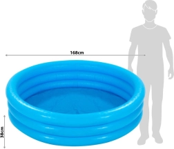 Geniet van de zomer met het kinderopblaasbad Intex Crystal Blue met afmetingen 168 × 38 cm. Het biedt een snelle en eenvoudige installatie, een stabiele driekamerconstructie en is gemaakt van veilig vinyl. Met een inhoud van 581 l bij een waterhoogte van 29 cm geeft het kinderen voldoende ruimte voor verfrissing en waterspelletjes. In de verpakking zit een reparatieset.