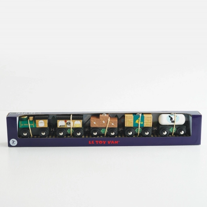 Schattige houten goederentrein in het groen van Le Toy Van, klaar voor fantasierijke avonturen. Gemaakt van duurzaam hout, met de hand nagewerkt met niet-giftige verf op waterbasis en dankzij magnetische koppelingen zijn de wagonnetjes eenvoudig te verbinden. Compatibel met de meeste houten treinbanen, stimuleert motoriek, taal en sociale vaardigheden. Ideaal voor kinderen vanaf 3 jaar.