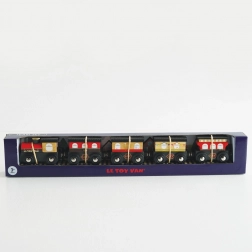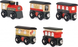 Dankzij de magnetische koppeling verbinden kinderen de locomotief eenvoudig met de vijf wagons, trainen ze de oog-handcoördinatie en ontwikkelen ze sociale vaardigheden tijdens het samenspelen. De trein is compatibel met gangbare houten rails en treinbanen.