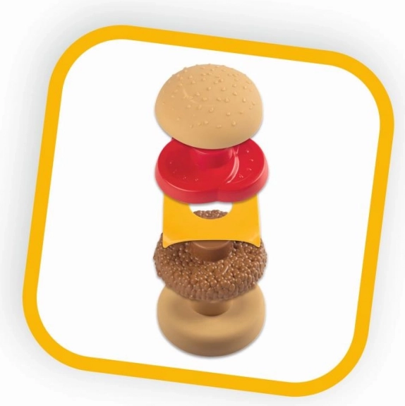 Van pan en keukengerei tot burger, frietjes, sauzen en kredietkaart. De pannenkoek verandert van kleur wanneer je hem in de pan omdraait voor nog meer speelplezier.