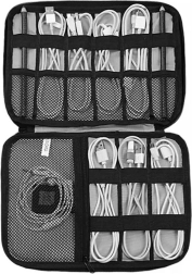 Elastische houders en een binnenvak bieden ruimte aan meerdere kabels en kleine accessoires, zodat je ze altijd snel terugvindt.