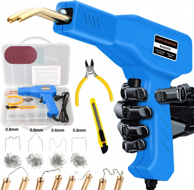 De kunststoflasser is ontworpen om aan al uw behoeften te voldoen voor het repareren van kunststofmaterialen en het dichten van scheuren. De set bevat 200 stalen nietjes in vier types van elk 50 stuks, bedoeld voor verschillende toepassingen.