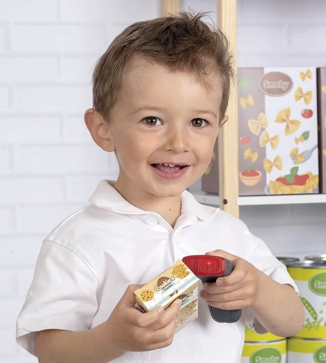 De elektronische kinder kassa van SMOBY biedt realistisch winkels spelen met tal van accessoires. Kinderen kunnen producten wegen, ze met de scanner met licht en geluid “scannen” en betalen met munten, biljetten of kaart. Inclusief een echte rekenmachine met LCD, een te openen geldlade en 30 stuks accessoires voor eindeloos plezier en leren.