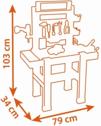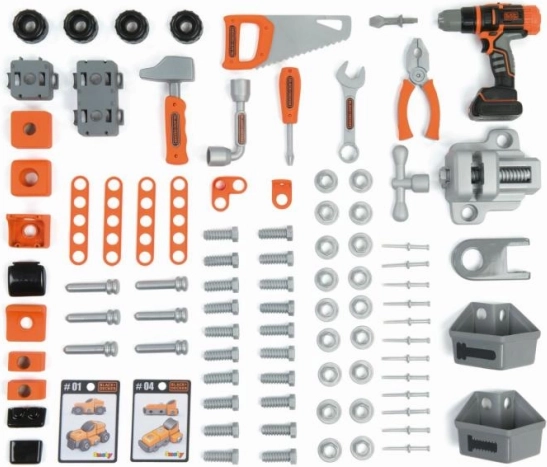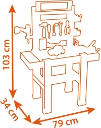 Deze gelicenseerde BLACK+DECKER werkbank van de Franse fabrikant Smoby biedt kinderen een authentieke werkplaatservaring. Dankzij de uitgebreide uitrusting, het geperforeerde gereedschapsbord, de stevige bankschroef en twee zijkleppen met manden hebben kleine doe-het-zelvers alles binnen handbereik. De werkplaats motiveert tot leren door te spelen – kinderen kunnen schroeven, timmeren, meten en hun eigen modellen bouwen.