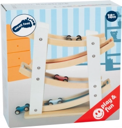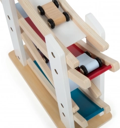 Deze prachtige houten racebaan is ideaal voor kleine coureurs. Dankzij de vier autootjes die pijlsnel de helling af kunnen racen, is het spel dynamisch en leuk. Gemaakt van hoogwaardig, natuurlijk hout in combinatie met kleurrijke accenten, biedt het een esthetische look en ondersteunt het tegelijkertijd de motorische ontwikkeling van kinderen.