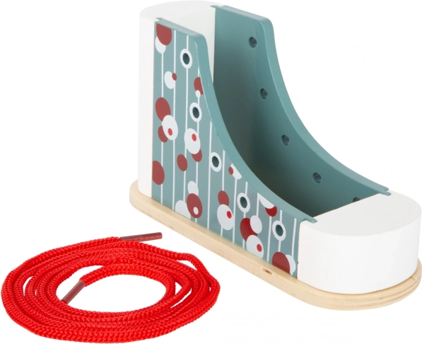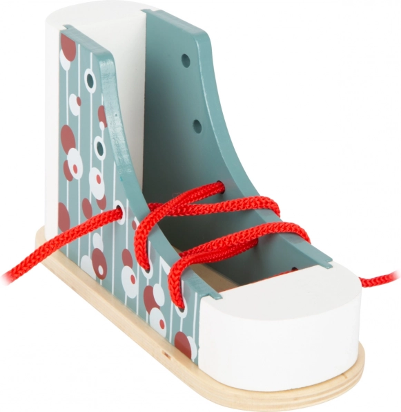 Deze houten schoen van het merk Small Foot is het ideale gereedschap voor kinderen die veters willen leren strikken. Met een modern ontwerp en kleurrijke patronen leren kinderen spelenderwijs, verbeteren ze hun coördinatie en geduld. Dankzij de stabiele constructie is de schoen bestand tegen strikpogingen en geschikt voor jonge kinderen in de kleuterleeftijd.