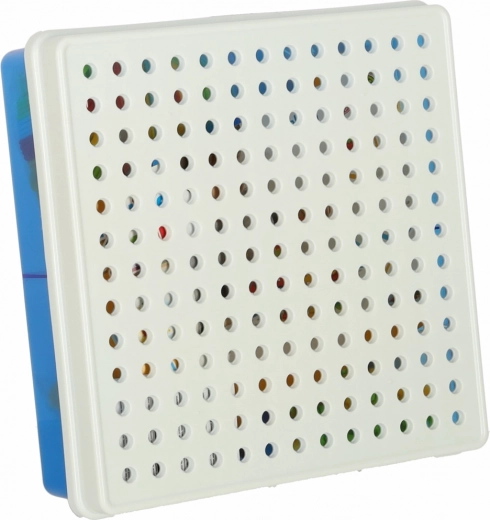 De geperforeerde plaat en kaarten met afbeeldingen helpen eenvoudig raketten, dieren en eigen ontwerpen te maken; vormen en kleuren leren wordt kinderspel.