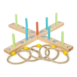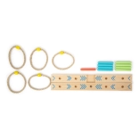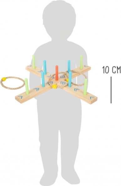 Ringwerpen is een leuk familiespel dat behendigheid en coördinatie verbetert. De basis is gemaakt van 100% FSC®-gecertificeerd hout, wat een duurzame en milieuvriendelijke herkomst van de materialen garandeert. Dankzij de gekleurde pijlen op de basis kunnen kinderen eenvoudig de score berekenen zonder cijfers te hoeven kennen. In de verpakking zit ook een draagbaar katoenen zakje voor gemakkelijk opbergen.