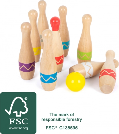 Ontdek klassiek speelplezier in een moderne uitvoering. De houten kegels SMALL FOOT Active zijn gemaakt van gecertificeerd FSC® hout, milieuvriendelijk en veilig voor kinderen. De set is perfect voor gezinsmomenten, feestjes en kinderspel in de tuin.