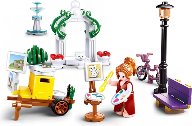We introduceren de Sluban Meisjesdroom Dorp - Schilder in het park, een bouwset die urenlang plezier en creatief spel biedt. Het bevat 114 onderdelen en een figuur met unieke beweegbare delen, wat gemakkelijk onderdompelen in de rol van een schilder in de frisse lucht mogelijk maakt.