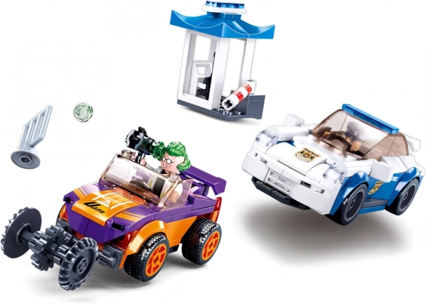 De bouwset bevat twee voertuigen - een wit-blauwe politieauto en een origineel kleurrijk auto, beide met een opwindmechanisme. Elk voertuig heeft unieke details, een eigen ontwerp en formaat, wat talloze speelscenario’s mogelijk maakt.