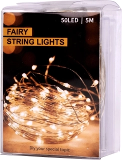 De fijne draadslinger met 50 LED’s laat je interieur prachtig stralen en geeft elke decoratie een feestelijke touch. De dunne, vormbare draad verberg je gemakkelijk in groen of plaats je in glazen vazen voor een sfeervolle lichtinstallatie. De koudwitte lichtkleur benadrukt een frisse winterlook en accentueert details van je styling.