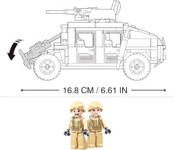 De bouwset is gemaakt van hoogwaardig, stevig materiaal en dankzij de compatibiliteit met LEGO, COBI en MEGA BLOKS breid je hem moeiteloos uit met extra onderdelen. Een ideale keuze voor jonge bouwers vanaf 6 jaar die houden van militaire thema’s en terreinvoertuigen.