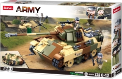 Bouw je eigen militaire techniek met de Sluban Army – gecamoufleerde middelzware tank 2-in-1 met twee bouwvarianten. De set met 725 onderdelen en 3 figuren stimuleert logisch denken, creativiteit en fijne motoriek. De onderdelen zijn compatibel met LEGO, Cobi en Mega Bloks en gemaakt van hoogwaardige, stevige kunststof.