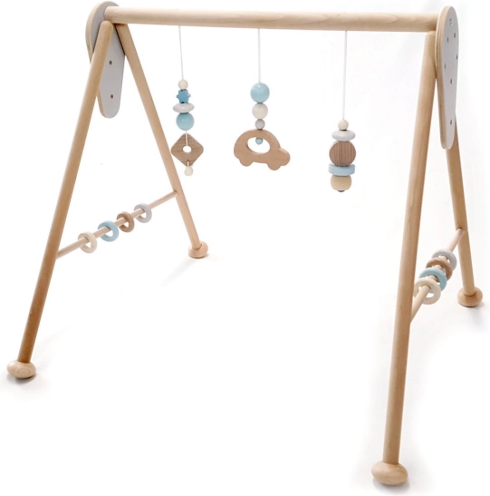 Deze houten speelboog is uitgerust met verplaatsbare elementen en rammelaars, die u kunt aanpassen aan de behoeften van uw kind. Makkelijke montage maakt het mogelijk om de speelboog in drie verschillende hoogtes te monteren, wat zorgt voor langdurig gebruik van het speelgoed.