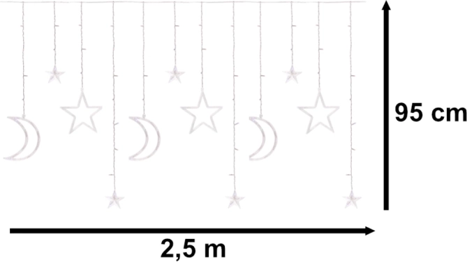 Lichtgordijn met LED maan en sterren 2,5 m, 138 LED – Multicolor