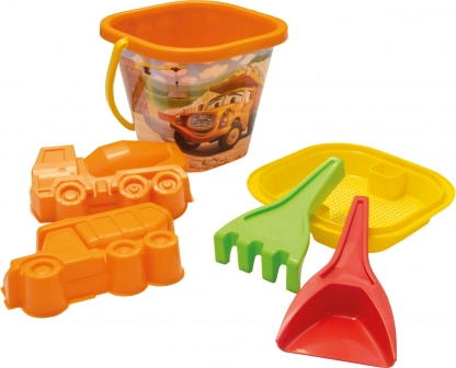 Ontdek het speelplezier in de zandbak met de Dino Tatra zandset. De set bevat 6 praktische onderdelen – een emmer, schep, hark, zeef en 2 vormpjes in de vorm van een vrachtwagen en een betonmixer. Stimuleert creativiteit, verbeeldingskracht en spelen in de buitenlucht.