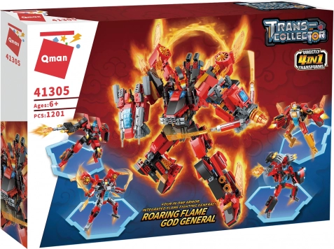 De Qman Roaring Flame God General bouwset brengt epische actie in vurige kleuren. Uit één set bouw je maar liefst vier verschillende modellen die je kunt ombouwen, combineren en steeds opnieuw op nieuwe manieren kunt ontdekken. De robuuste constructie, opvallende details en transformaties tussen robots en voertuigen maken deze set een perfecte keuze voor jonge bouwers en verzamelaars.