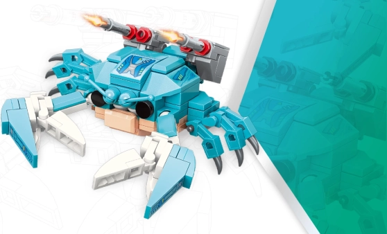 Ontdek de mogelijkheden om uit elkaar te halen en om te bouwen naar een aanvalshouding met deze unieke krab uit de Magic Cube-serie.