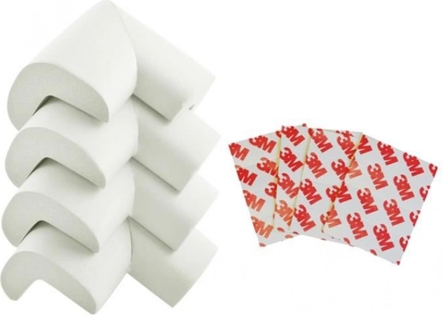Praktische schuimbeschermers voor hoeken in een sneeuwwitte kleur beschermen tegen stoten aan scherpe randen van tafels, kasten of trappen. Zacht en elastisch schuim, eenvoudige installatie met sterke dubbelzijdige tapes en makkelijk onderhoud voor een veiliger huis, vooral met kinderen.