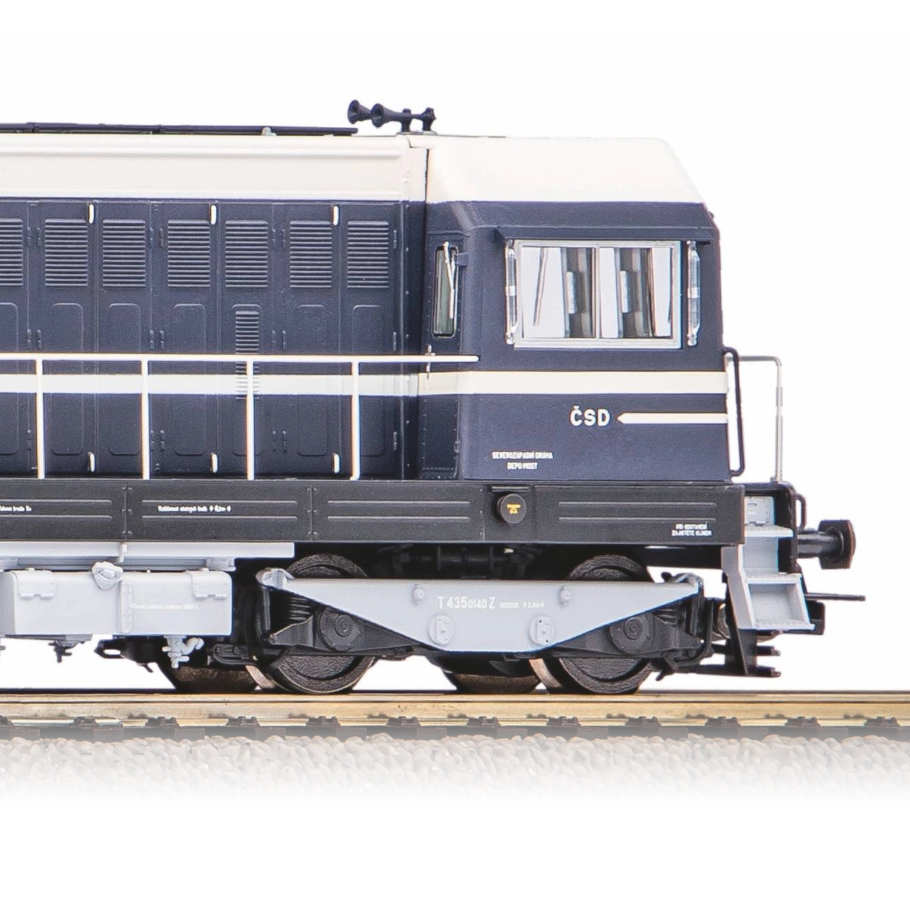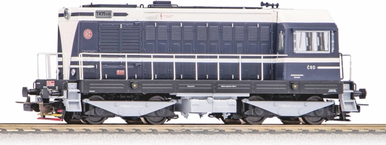 Voorbeeld van het geluid van de ingebouwde digitale decoder.  Nieuw voor 2021 uit de Expert-productlijn! Natuurgetrouw en gedetailleerd model van de rangeerdiesellocomotief T 435 (BR 107) in de kleuren en opdruk van de ČSD. Het precieze vakmanschap wordt versterkt door de geperste details op de frontzijde van de locomotief. De kleurstelling en opdruk, inclusief alle decoratieve elementen, zijn van de hoogste kwaliteit die past bij de productlijn. Het model is uitgerust met een krachtige motor met vliegwielen. Wit/rood LED-licht wisselt afhankelijk van de rijrichting. Ook de machinistencabine en het treinnummerbord zijn verlicht, alles schakelbaar via digitale besturing. Het model is voorzien van een digitale decoder met geluidsmodule en luidspreker, met een geluidsbibliotheek die trouw is aan het voorbeeld. Compatibel met de protocollen DCC, Rail-ComPlus®, Motorola® en Selectrix®, en ook geschikt voor analoge bedrijfsmodus. De passende bedrijfsmodus wordt automatisch intelligent herkend. Met PIKO SmartControl-bedieningsunits, of units die compatibel zijn met het mfx®-formaat, zijn uitgebreide mogelijkheden voor individuele functiemapping beschikbaar. Bij de locomotief zijn wagons van het bijpassende type en uitvoering verkrijgbaar.  Belangrijkste kenmerken: ingebouwde digitale decoder met geluidsmodule en luidspreker; vier assen; motor met twee vliegwielen; twee aangedreven wielen met antislipbanden; verlichting met kleurwisseling afhankelijk van de rijrichting; interieurverlichting; PluX22-interface conform NEM 658; NEM 362-schacht met kortkoppelingkinematica.  Documentatie: brochure voor BR 107/T 435 (DE); algemene informatie voor BR 107/T 435 (DE, EN, F, NL); gebruiksaanwijzing en lijst met reserveonderdelen model nr. 52428 (DE, EN, F, CZ)