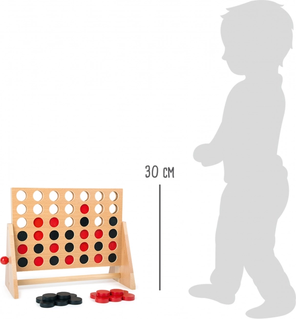 Het spel is perfect voor kinderen vanaf 5 jaar en volwassenen. Het stimuleert logisch denken, zetplanning en fijne motoriek. Na het einde van een partij hoef je het frame alleen maar te draaien en de fiches glijden er makkelijk uit – in een mum van tijd kun je weer spelen.