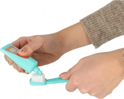 Het spel ontwikkelt de fijne motoriek, verbeeldingskracht en sociale vaardigheden. Dankzij realistische accessoires, zoals een spiegeltje, spuitje en een “boortje”, leren kinderen tanden goed poetsen en een tandartscontrole als routine zonder stress.