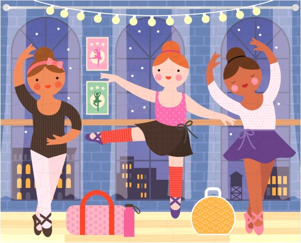 Eén puzzel, twee prachtige balletscènes. Kinderen kunnen afwisselen van thema en steeds weer nieuwe afbeeldingen leggen.